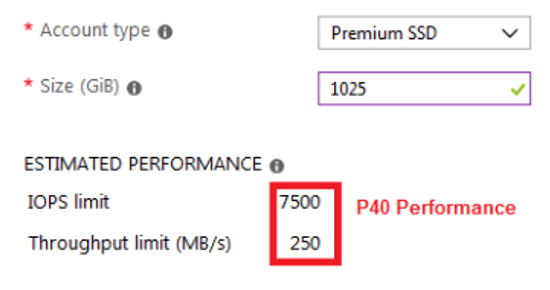 Ainsi, même si Microsoft communique sur les IOPS et le throughput théoriques de leurs gammes de disques, l’une des caractéristiques peut limiter l’autre. Par exemple sur un disque P20 (2 300 IOPS et 150 MiBps), si l’application exploitant ce disque réalise uniquement des petites transactions (512 Bytes), alors nous allons rapidement atteindre le plafond des 2 300 IOPS pour une bande passante de 1,12 MiBps (bien en dessous de la bande passante théorique d’un disque P20).